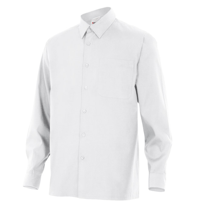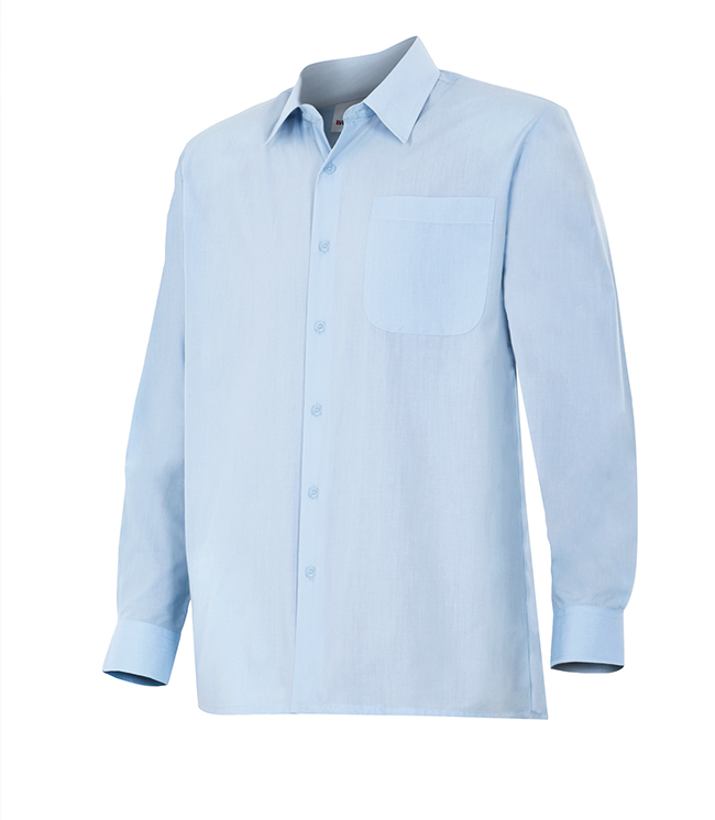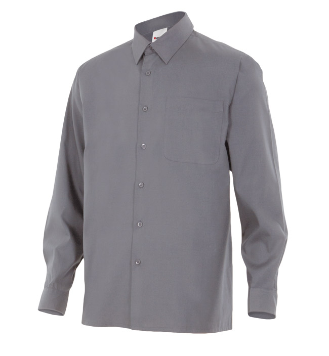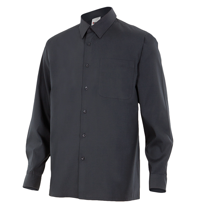 Camisa de manga larga. Cierre central con botones, puños con cierre de botón y un bolsillo de parche en el pecho.