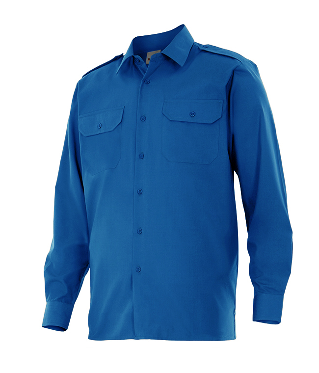 Cierre central con botones, puños con cierre de botón, dos bolsillos de parche en el pecho con tapeta y botón y galoneras con botón.