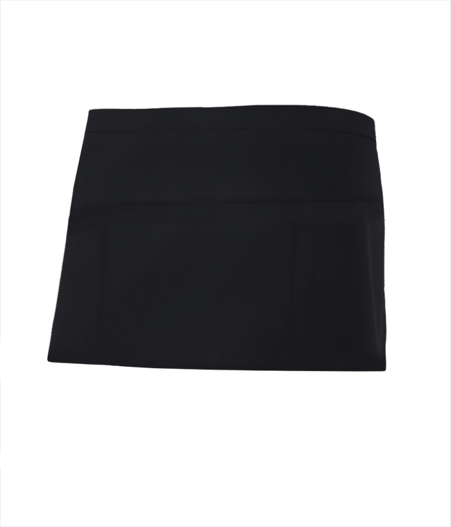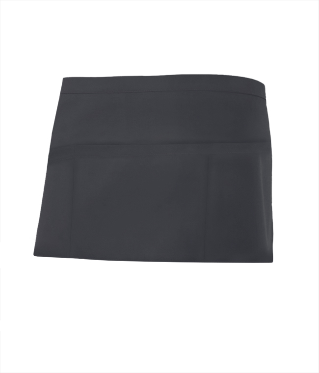 Delantal corto con un amplio bolsillo en V con tres compartimentos.