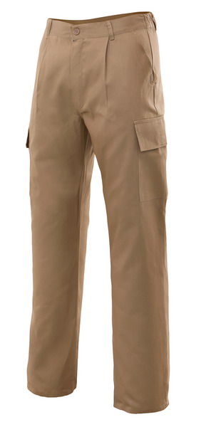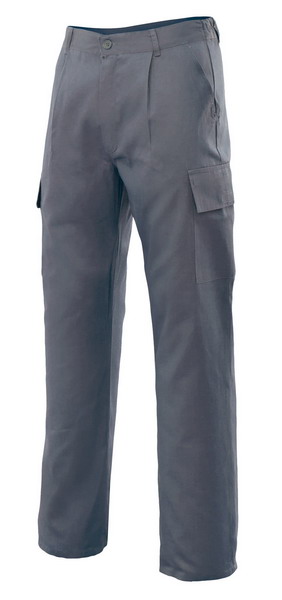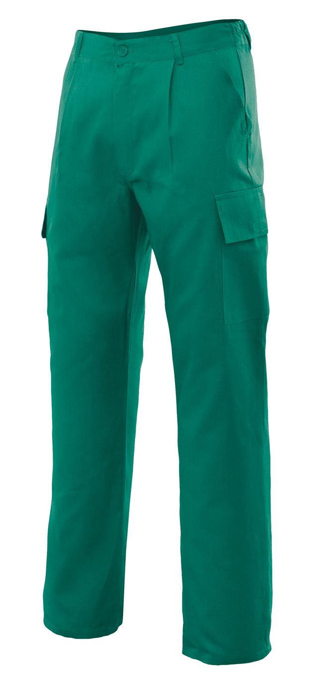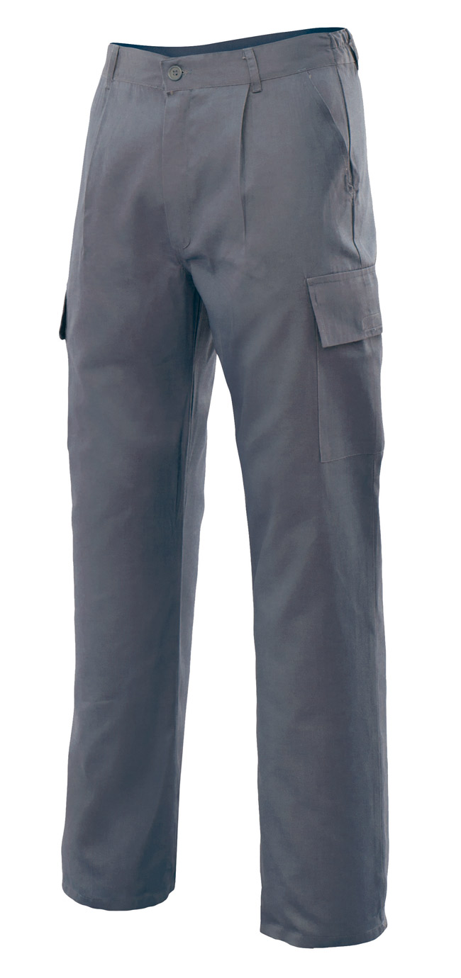 Pantalón multibolsillos con pinzas y goma elástica en el interior de la cinturilla de la espalda. Dos bolsillos franceses y tres con tapeta y velcro. Pespunte trasero de seguridad.