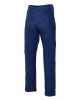 Pantalón de algodón con pinzas y goma elástica en el interior de la cinturilla de la espalda. Dos bolsillos franceses y cuatro con tapeta y botón. Pespunte trasero de seguridad.