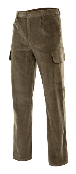 Pantalón de pana multibolsillos con pinzas y goma elástica en el interior de la cinturilla de la espalda. Dos bolsillos franceses y dos laterales con tapeta y velcro y uno trasero de vivo con botón. Pespunte trasero de seguridad.