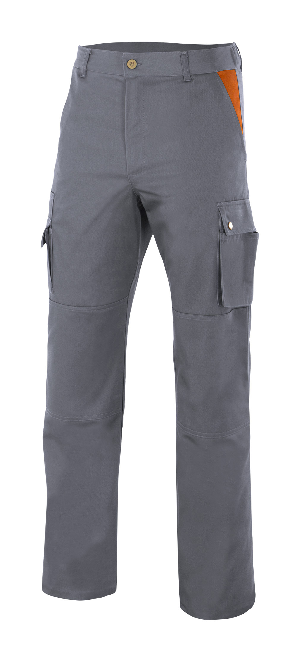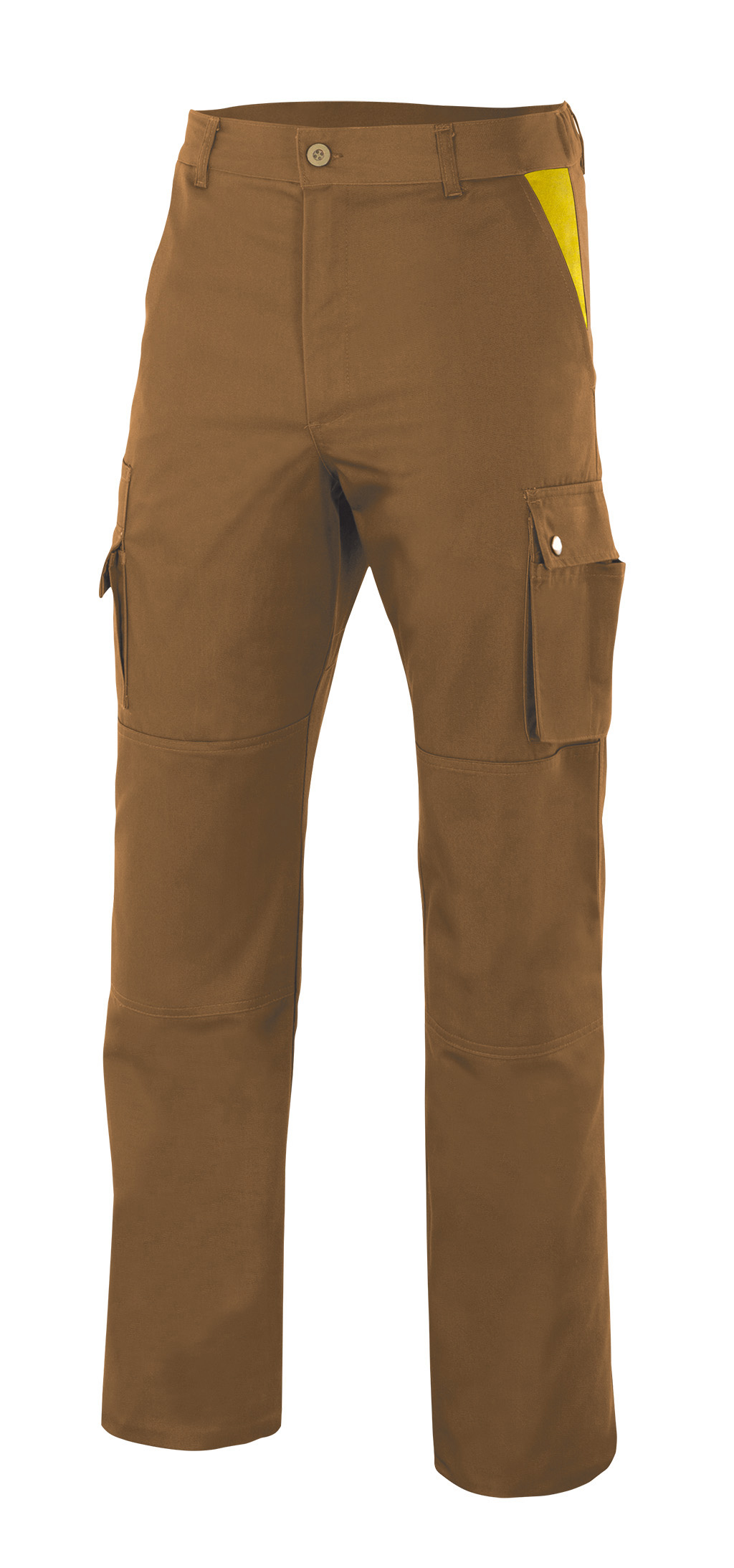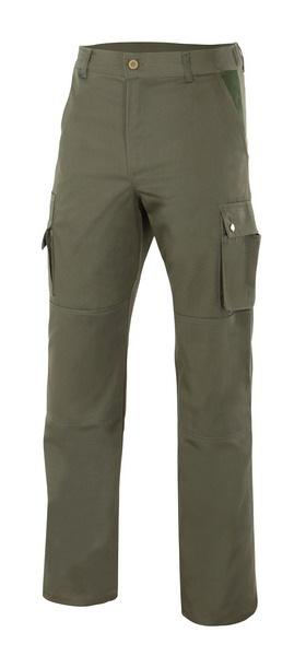 Pantalón multibolsillos con refuerzo de tejido en trasero y rodillas. Goma elástica en el interior de la cinturilla de la espalda, varios bolsillos y botones automáticos. Pespunte trasero de seguridad. Contraste en bolsillos franceses.