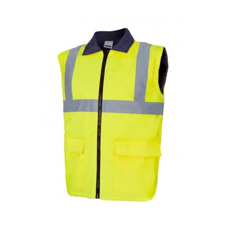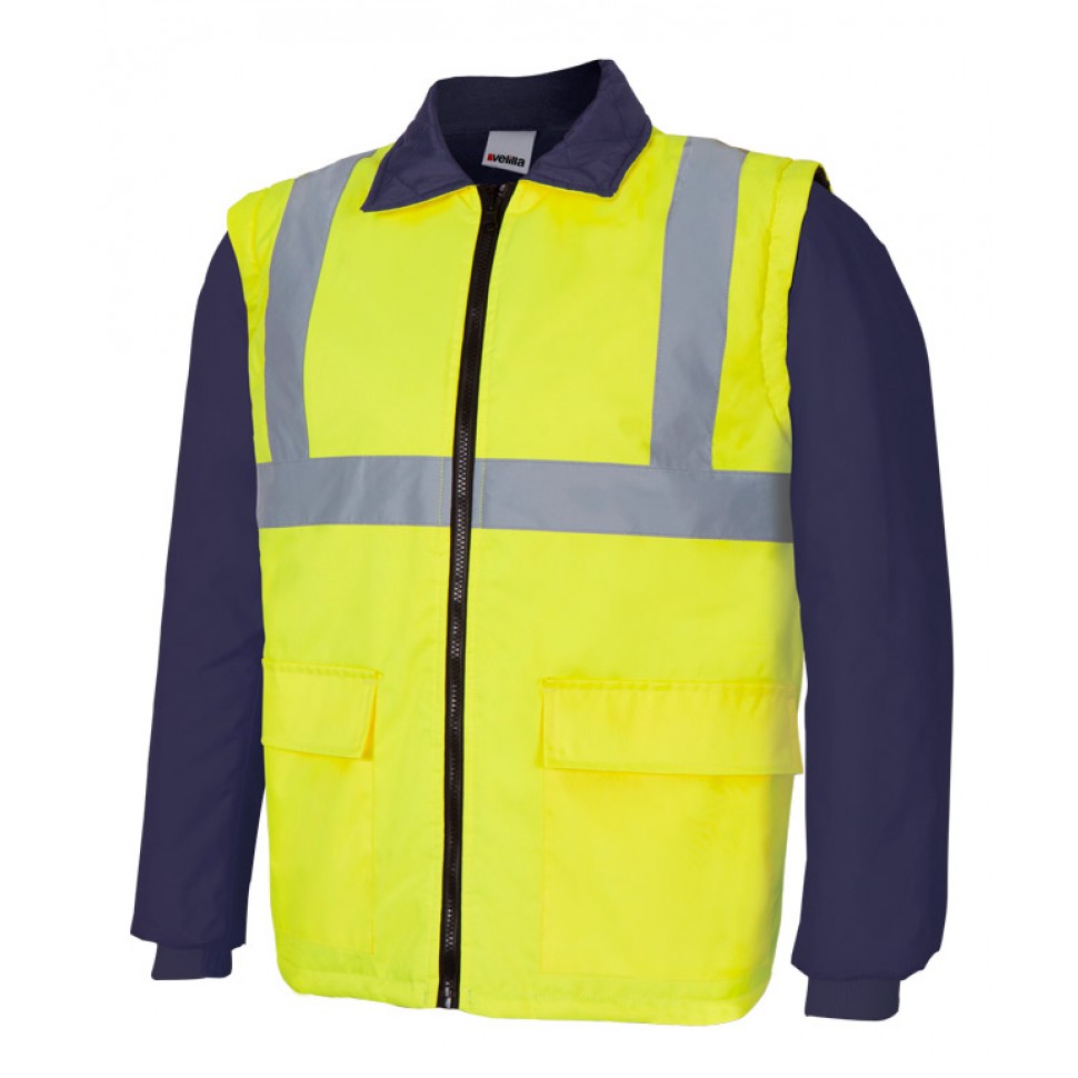 Cazadora / Chaleco - Cierre central con cremallera. - Cintas reflectantes en torso y hombros. - Puños de canalé. - Dos bolsillos inferiores de parche, con tapeta y velcro. - Un bolsillo interior de parche, con cremallera. - Mangas desmontables.