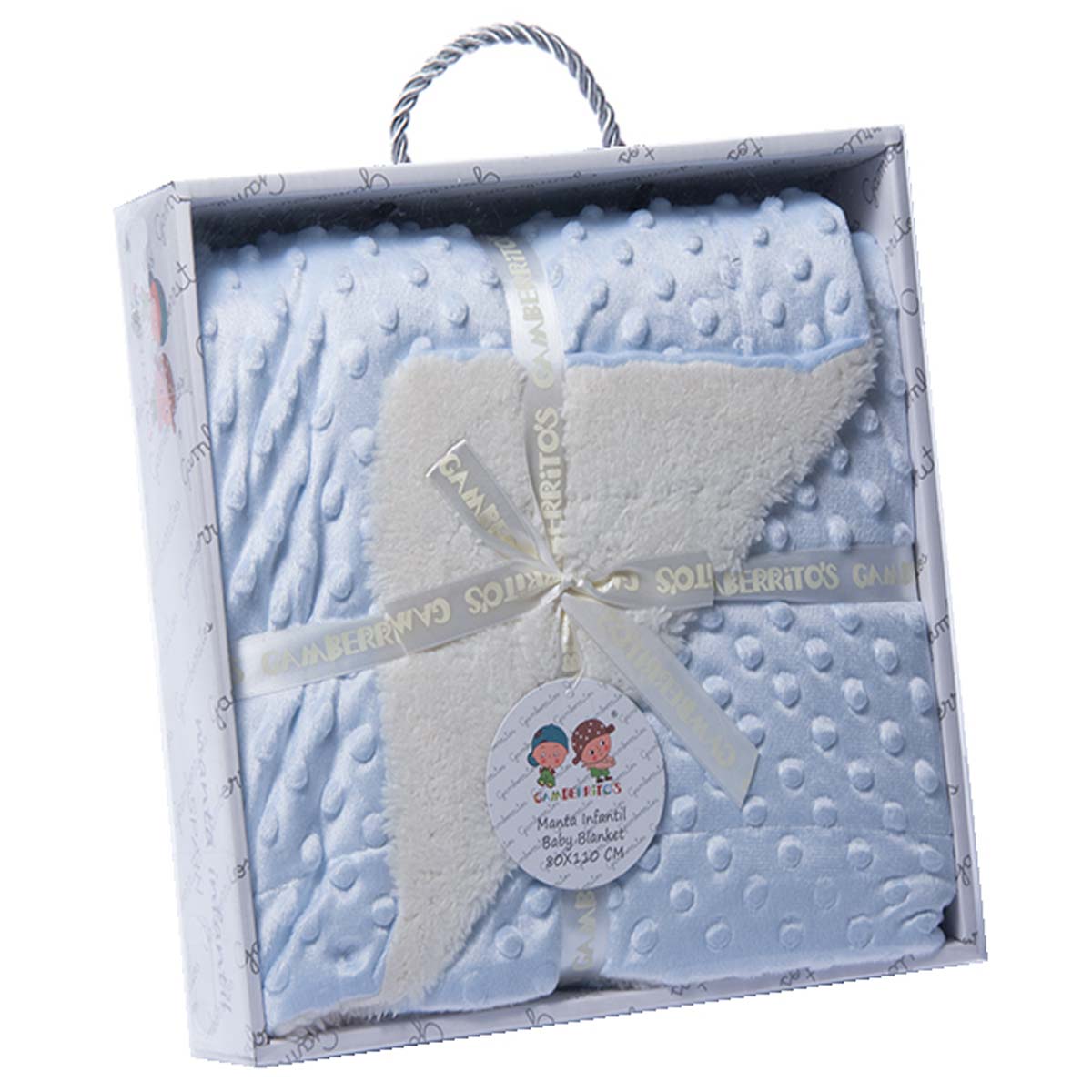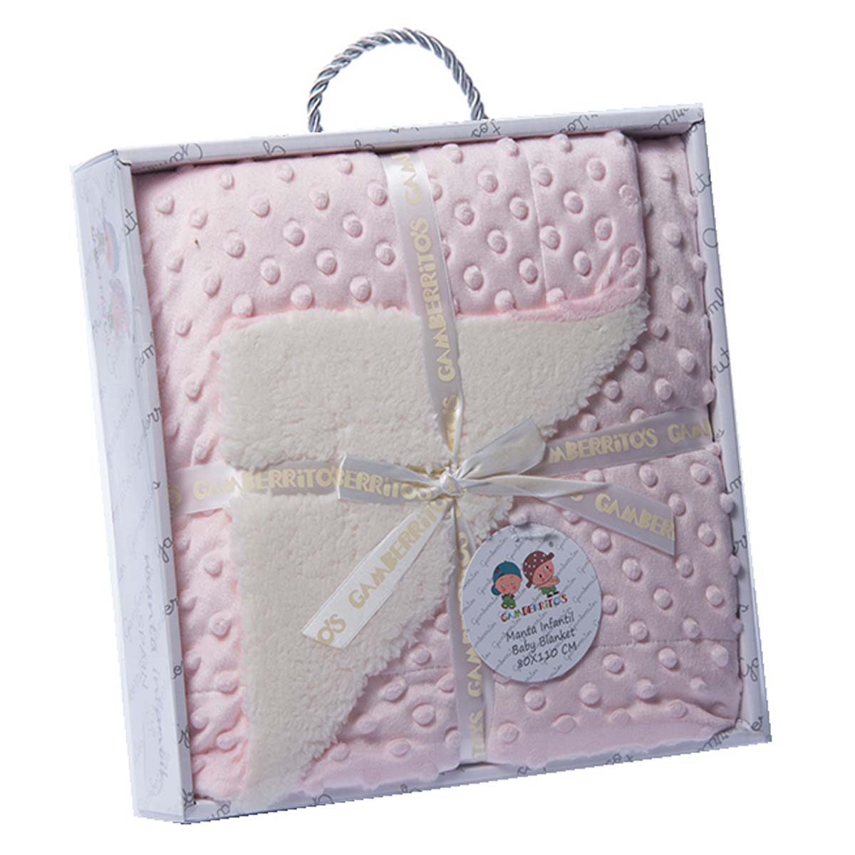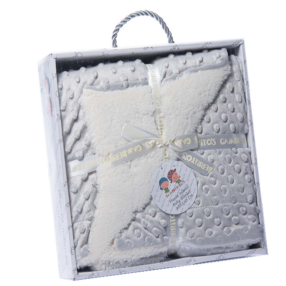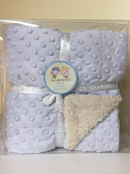 Manta extrasuave de topitos con borreguito en la parte trasera, muy suave y agradable.