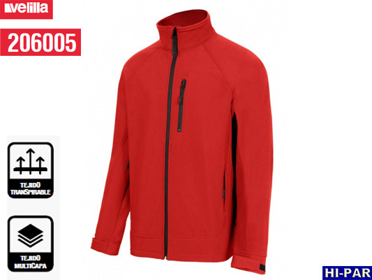 Soft Shell ligado con forro polar y membrana TPU. 94% Poliéster / 6% Elastano, 280 g/m2