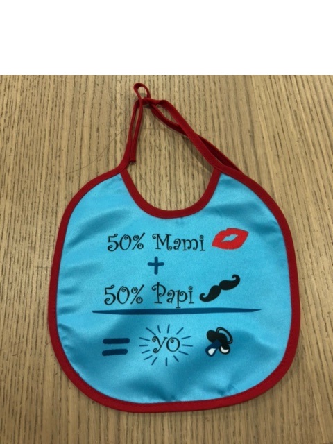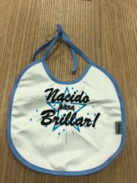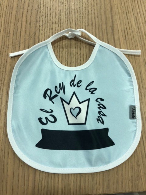 Babero de tela personalizable mediante las técnicas de sublimación, bordado, pedrería, transfer, vinilo y serigrafía.