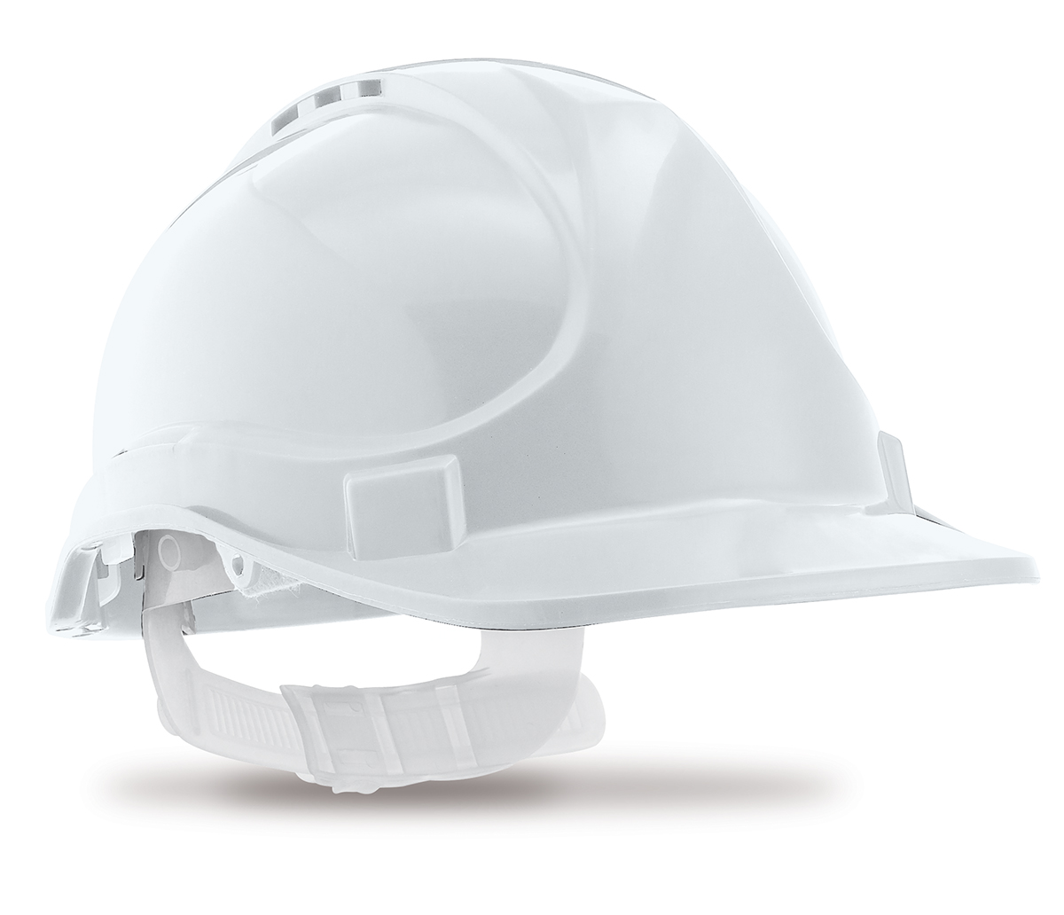 Mod. "STRIKE". Casco de protección cierre de cinta. Color Blanco.Características: Casco fabricado en Polietileno de Alta Densidad (HDPE). El Polietileno de Alta Densidad ofrece una mayor protección (resistencia al impacto) que otros termoplásticos (Polietileno baja densidad, Polipropileno…), a la vez que una mayor ligereza y resistencia al envejecimiento.